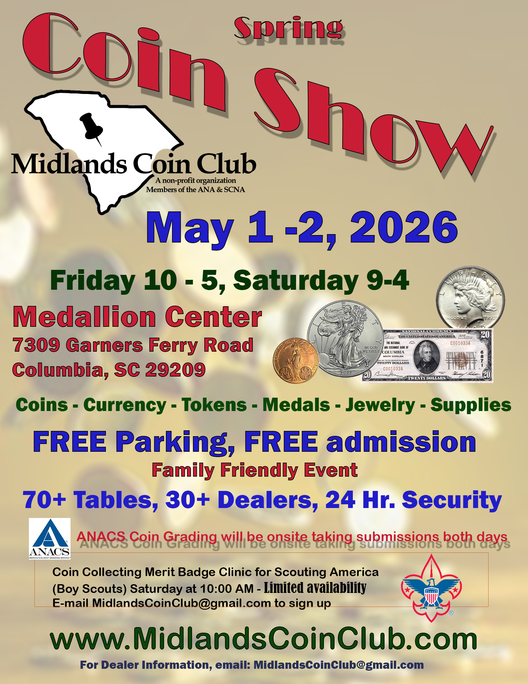 Midlands Coin Club, PO Box 8212, Columbia, SC 29202