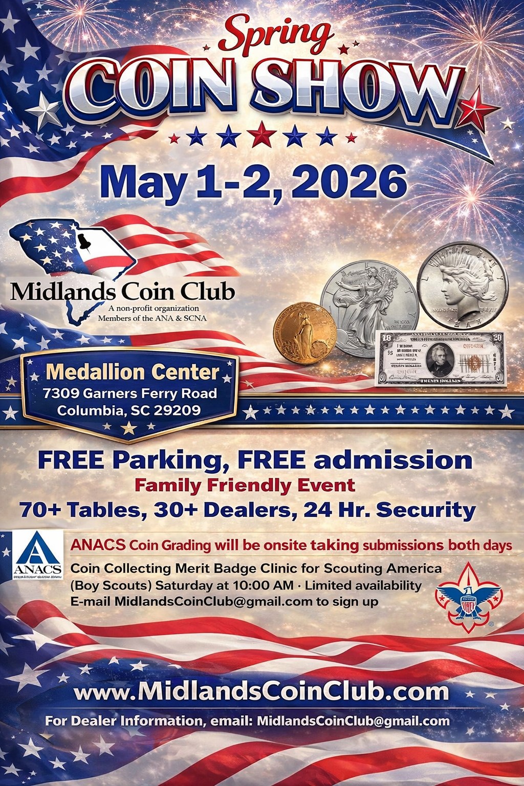 Click here to add your name and information the SC Coin Collector Notification System. You will get updates on SC shows, special events and cancelations. You can also unsubscribe at any time too.